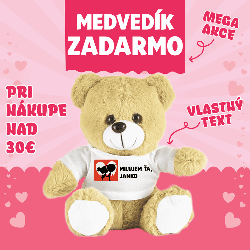 Stačí nakúpiť nad 30 € a do košíka si môžeš úplne zadarmo pridať roztomilého medvedíka s vlastným textom! 🧸💖