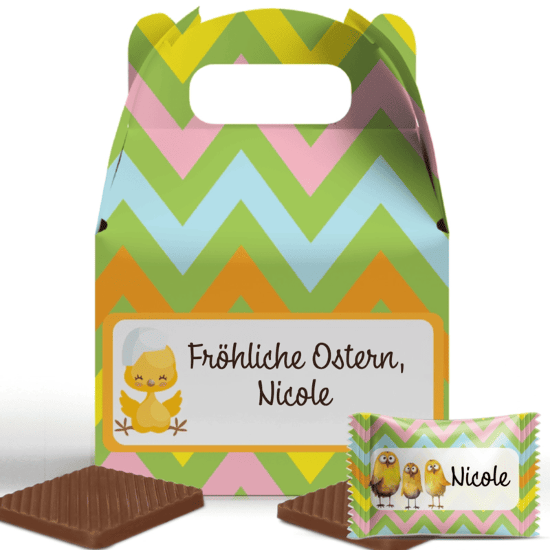 Oster-Mini-Schokoladen mit individuellem Text in einer Geschenkbox 🐣🍫