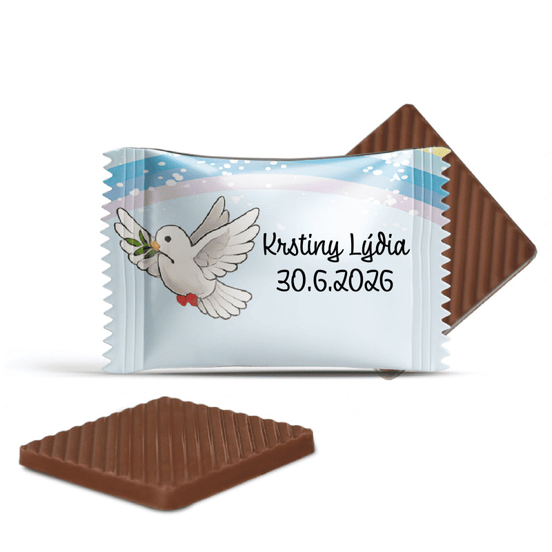 Na každú čokoládku môžete pridať vlastný text – meno bábätka, milý odkaz alebo poďakovanie hosťom.